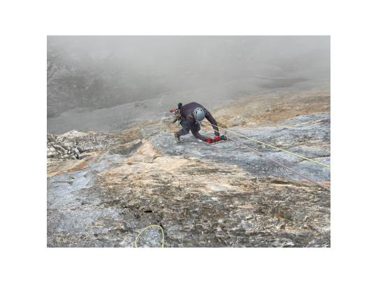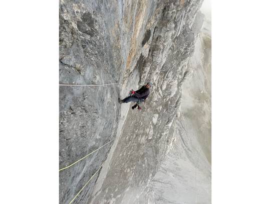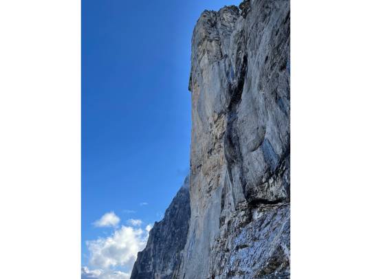 benachbarten Route "Merci la vie", in die sich einzelne Kletterer