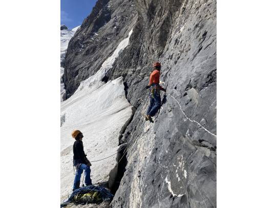 Im Sommer 2023 haben Resu Leibundgut und Sacha Wettstein die Route Märmelibahn in der Eiger Südostwand komplett saniert. Sie haben alle (damals noch von Hand) gebohrten Haken der 22 Seillängen 1 : 1 durch hochwertige Inox-Bohrhaken von Rebolting ersetzt. Zusätzlich musste die Route nach unten um einen weiteren Standplatz und ein paar Zwischenhaken erweitert werden. Die Einstiegshöhe auf dem Challifirn liegt aktuell rund 12 Meter tiefer als bei der Erstbegehung vor 25 Jahren. In den letzten Jahren wurde es bei tiefem Schneestand im Spätsommer schwierig, an die ersten Haken zu klettern. Im Jahr zuvor wurde von den Erstbehgehern bereits das Biwak in der Wandmitte neu eingerichtet. Vielen Dank Rebolting für das Material und André Nyffeler für die Unterstützung.