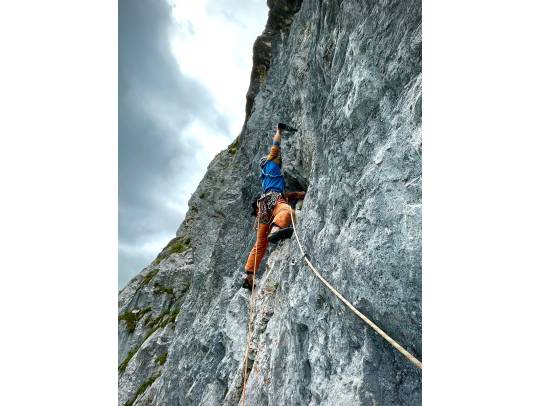 Nach einigen Jahren träumen und mit dem Fernglas hochlinsen hat es nun geklappt und entstanden ist eine moderne, anspruchsvolle, alpine Sportkletterroute an der Südseite des grossen Grenadiers.