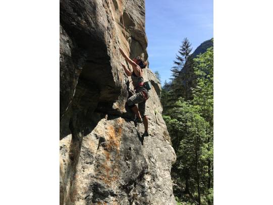 Sozusagen als Pilotprojekt wurde in diesem neuen Klettergebiet von Thomi Zumtaugwald und Johann Rebolting Material zum Erschliessen gekauft. Heraus gekommen ist ein super Gebiet mit Schwierigkeiten von 5c+ bis 7b+. Ein kurzer Zustieg von 5 Minuten und die schön gestaltete Basis laden für einen Besuch ein. Alle Routen sind sehr schön angeschrieben...siehe dazu das Topo