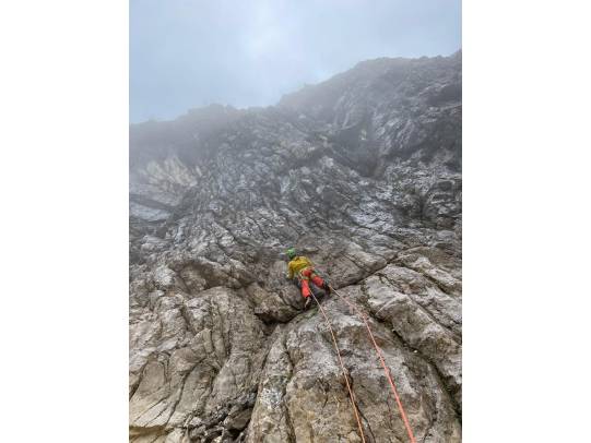 Ausrüstung: Doppelseil 50-55m, 19 Expressschlingen, Rocks und mittlere Friends