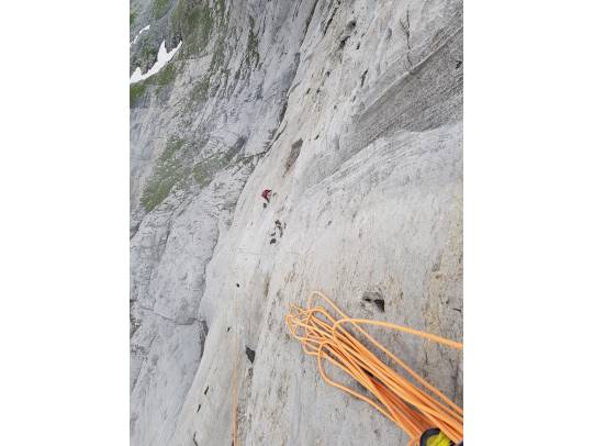 2019 haben Simon Chatelan und Baptiste Studemann, begonnen die Route As de coeur mit neuem Material auszurüsten. In diesem Sommer haben sie Ihr Projekt nun vollendet und die letzten alten Spits entfernt. Die Route ist so zu einem sehr lohnenden Ziel am Reissend Nollen geworden!