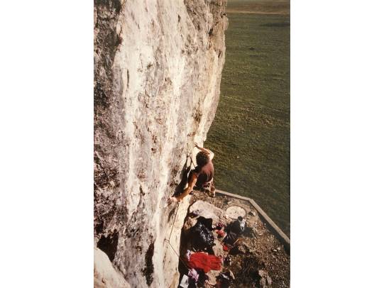 Etwas zum Bild: Martin Scheel 1983!!! bei der Erstbegehung von Fledermaus 8a. Dazu ist erwähnenswert dass 1983 nur gerade der englische Star Kletterer Jerry Mofat mit The Face 8a+ schwieriger geklettert hat. Die Route ist heute auch unter dem dem Namen Marignano bekannt. Karim hat sie mit dem Einverständnis von Martin saniert...